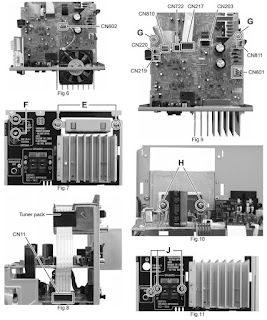 the three screws J attaching the Amplifier board assembly. (See Fig.11)